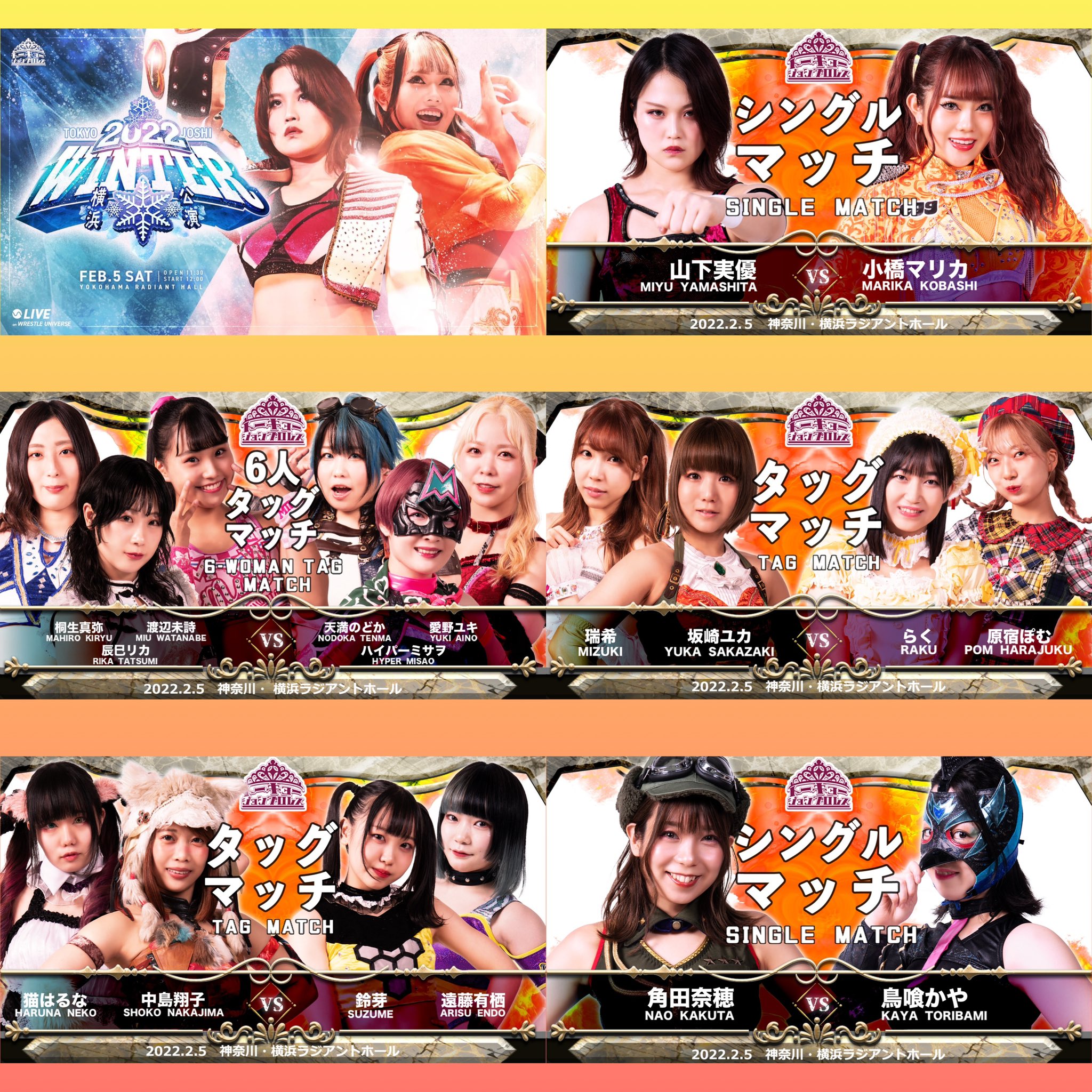 6. Goddesses of Stardom Title: Hazuki & Koguma (c) vs. Mina Shirakawa & Unagi Sayaka