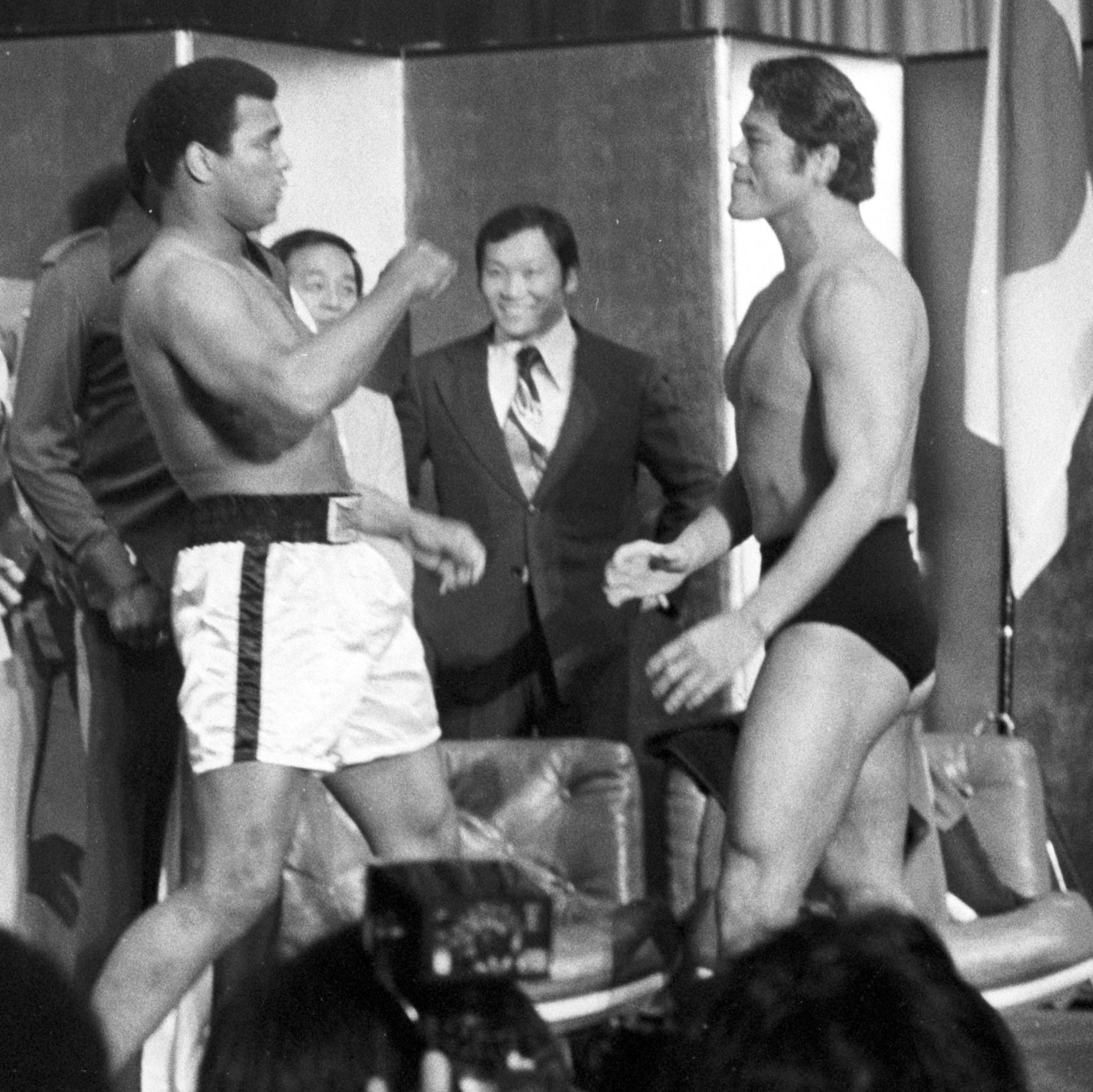 Her basın toplantısı, sahte kavgalarla (mock-pullapart) sonlanıyordu. 58 yaşındaki Fred Blassie, hala birkaç yıl öncesine kadar sadece konuşmalarıyla arenaları doldurmuş biri olarak, şaşırtıcı derecede sakin kalıyordu. Çünkü o da, çocukken kendisini izleyip taklit eden bu genç adamla (Ali) rekabet edemeyeceğini biliyordu. Onun rolü, genellikle Ali sahte bir şekilde Inoki’ye saldırmak istermiş gibi yaptığında, şampiyonu “zorla” tutmak oluyordu.