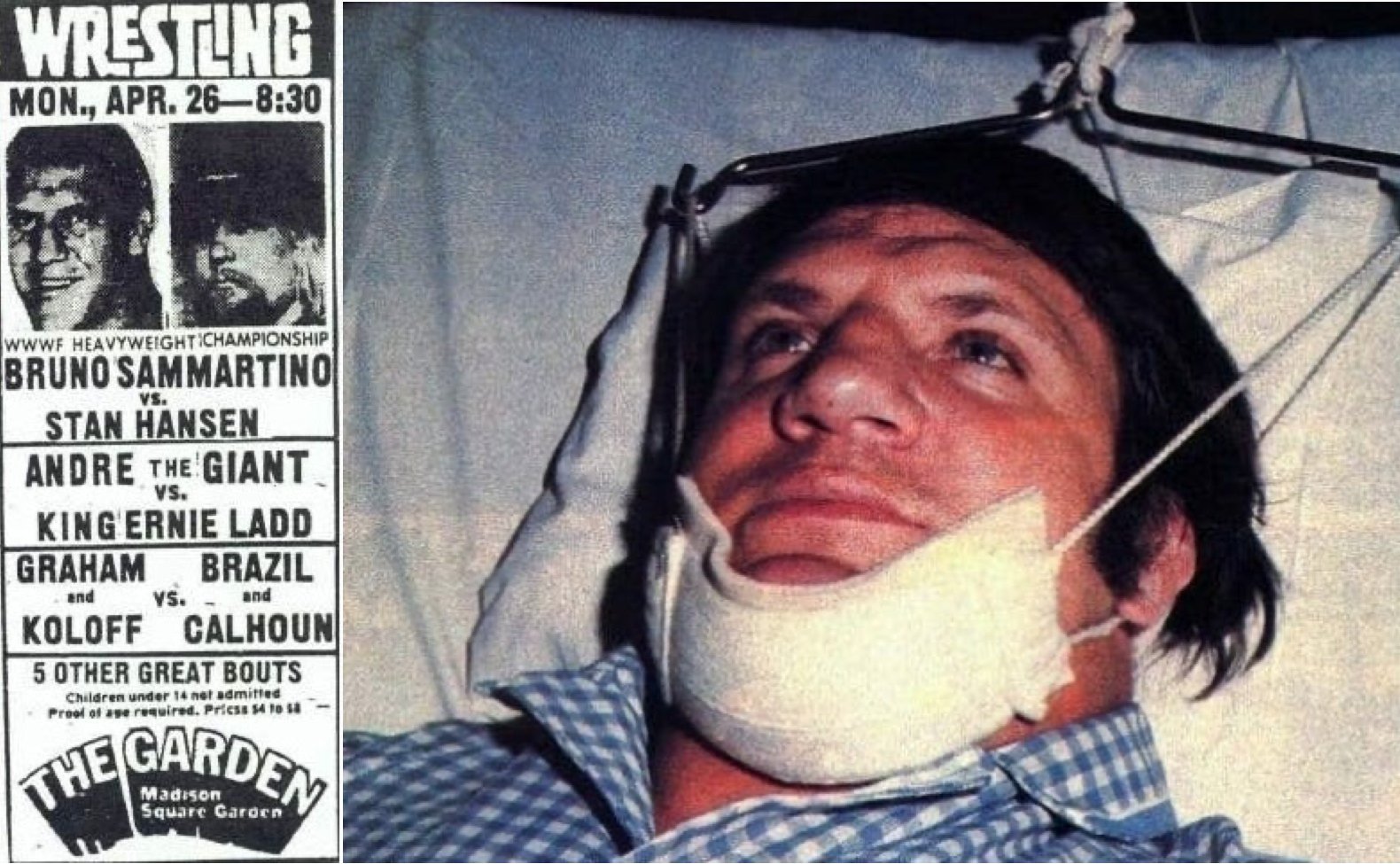 26 Nisan 1976’da Sammartino, Stan Hansen’a karşı unvanını ilk kez savunuyordu. Maç sırasında Hansen sıradan bir bodyslam yaptı, ancak erken bıraktı ve Sammartino’yu doğrudan başının üstüne düşürdü. Sammartino’nun boyun kasları çok güçlü olmasaydı, muhtemelen felç kalacaktı. Yine de, boynu kırılmış ve muhtemelen beyin sarsıntısı geçirmişken maça devam etti. Maç, Sammartino’nun ağır şekilde kanaması (planlanmış bıçak kesisi) nedeniyle durduruldu ve Hansen kazandı; ancak unvan Sammartino’da kaldı.