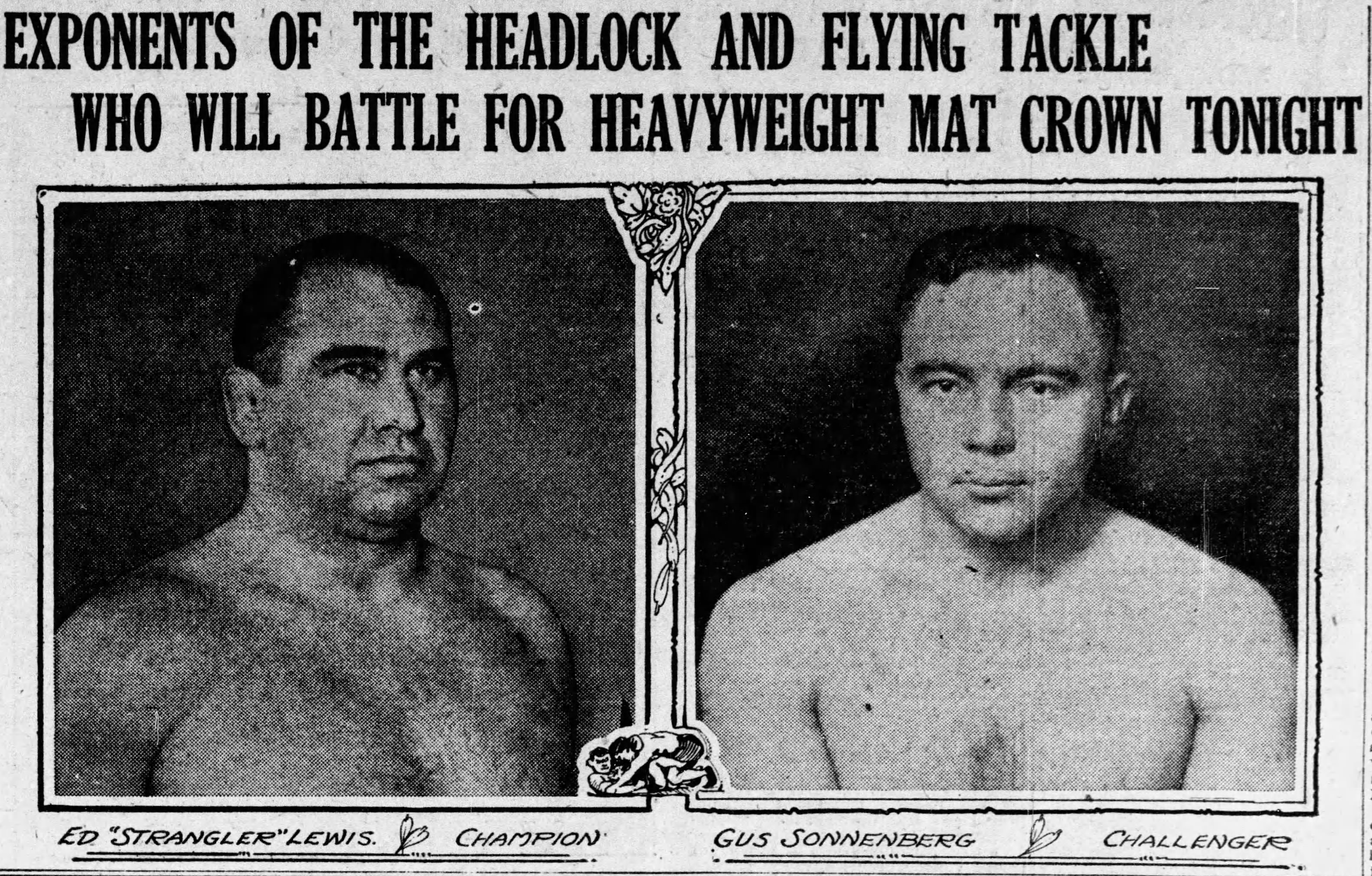 Steam Rollers 2 Aralık 1928’de NFL şampiyonluğunu kazandıktan sonra Bowser, Sonnenberg’in güreşe geri döneceğini ve 4 Ocak 1929’da, yeni inşa edilen Boston Garden’da Lewis’le unvan maçı yapacağını duyurdu. Rakamlar büyük ihtimalle abartılmış olsa da, yerel basında Lewis’in 50.000 dolarlık bir garanti ücret aldığı, Sonnenberg’in ise kapı hasılatının %12,5’ine imza attığı bildirildi. Röportajlarında Sonnenberg, bu maçın kariyerinin en büyük spor olayı olduğunu söylüyordu — ki bu oldukça dikkat çekiciydi, zira daha yeni NFL şampiyonluğu oynamıştı.